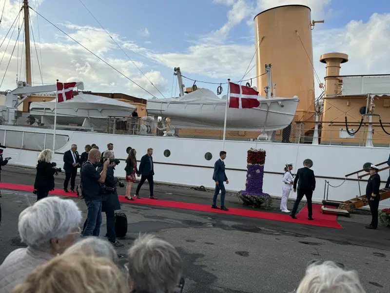 Reception på Kongeskibet Dannebrog for særligt indbudte. Gæster går ombord på skibet kl. 19.00.